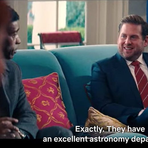 Don’t Look Up is funny, scathing, and sad. Don’t watch it through the usual binary red or blue political lens. Far more going on here.
