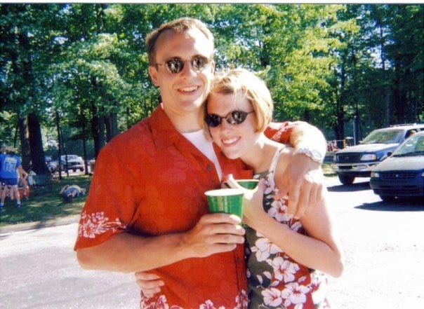 Here’s a photo from a concert tailgate so long ago that I had hair: