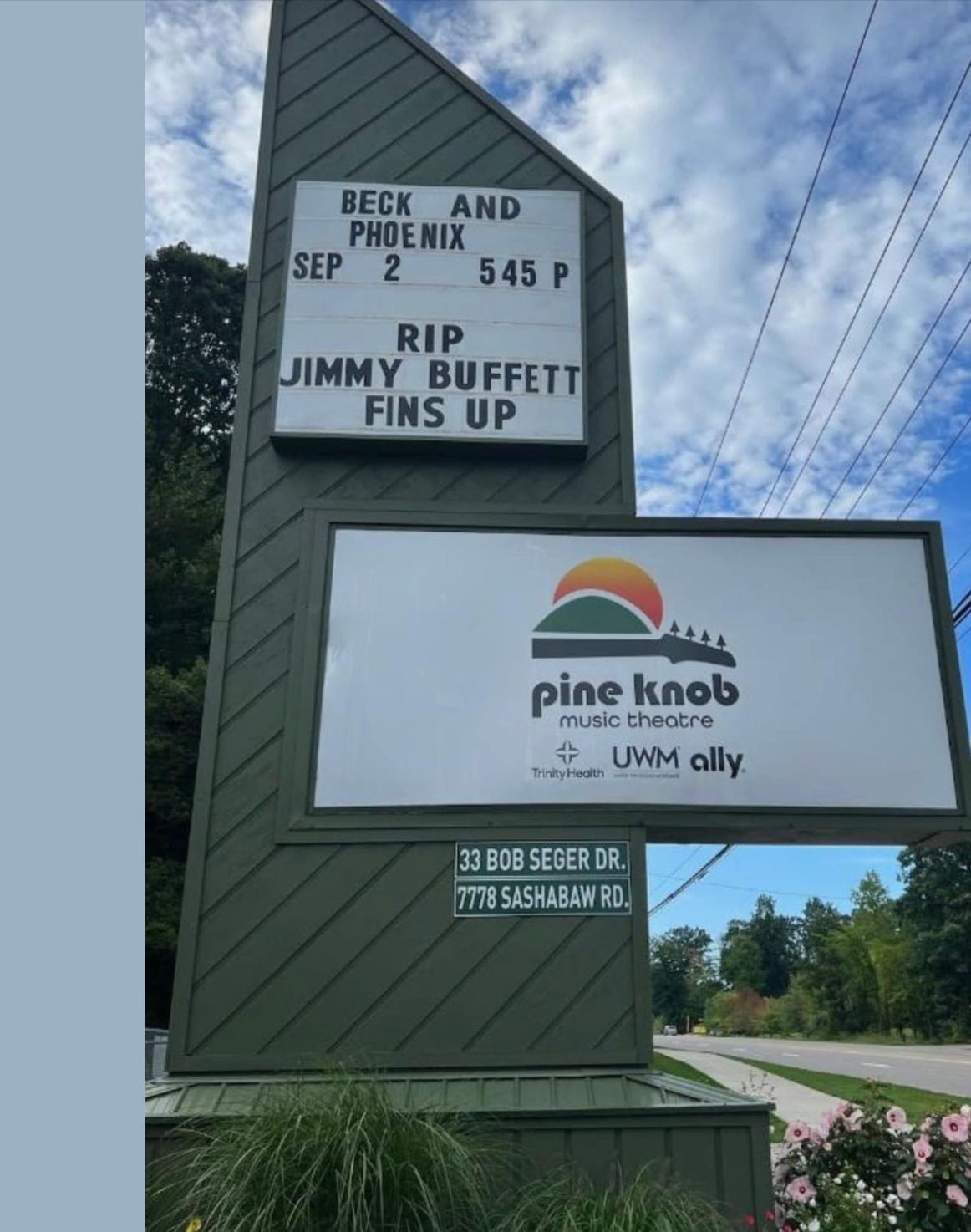 Kudos to Pine Knob, the concert venue in Michigan where the best Buffett concert memories reside for myself and a group of friends, for a proper salute: