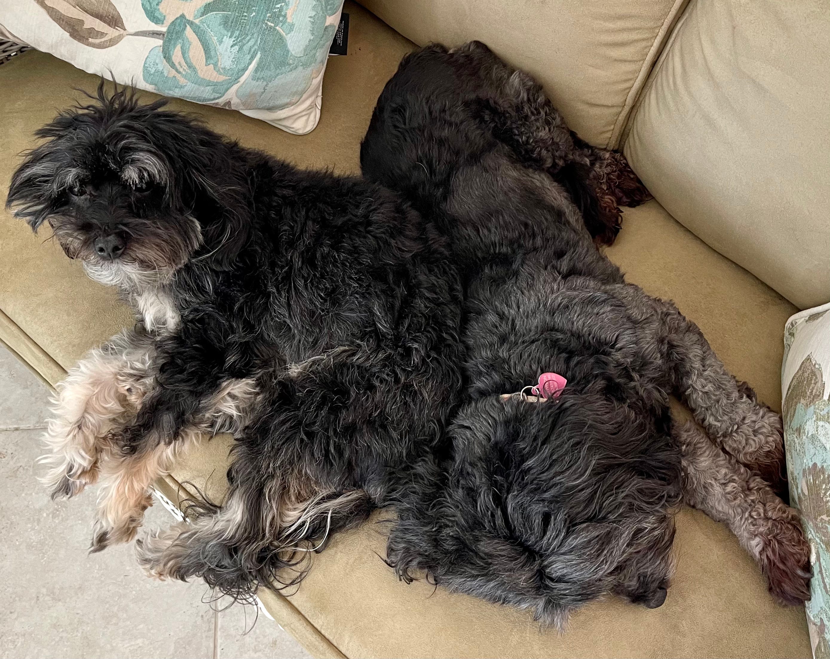 This is Finn (left) and Lucy (right). You might think they are hanging out together in this photo. But really, it’s just Finn hanging out with Lucy.
